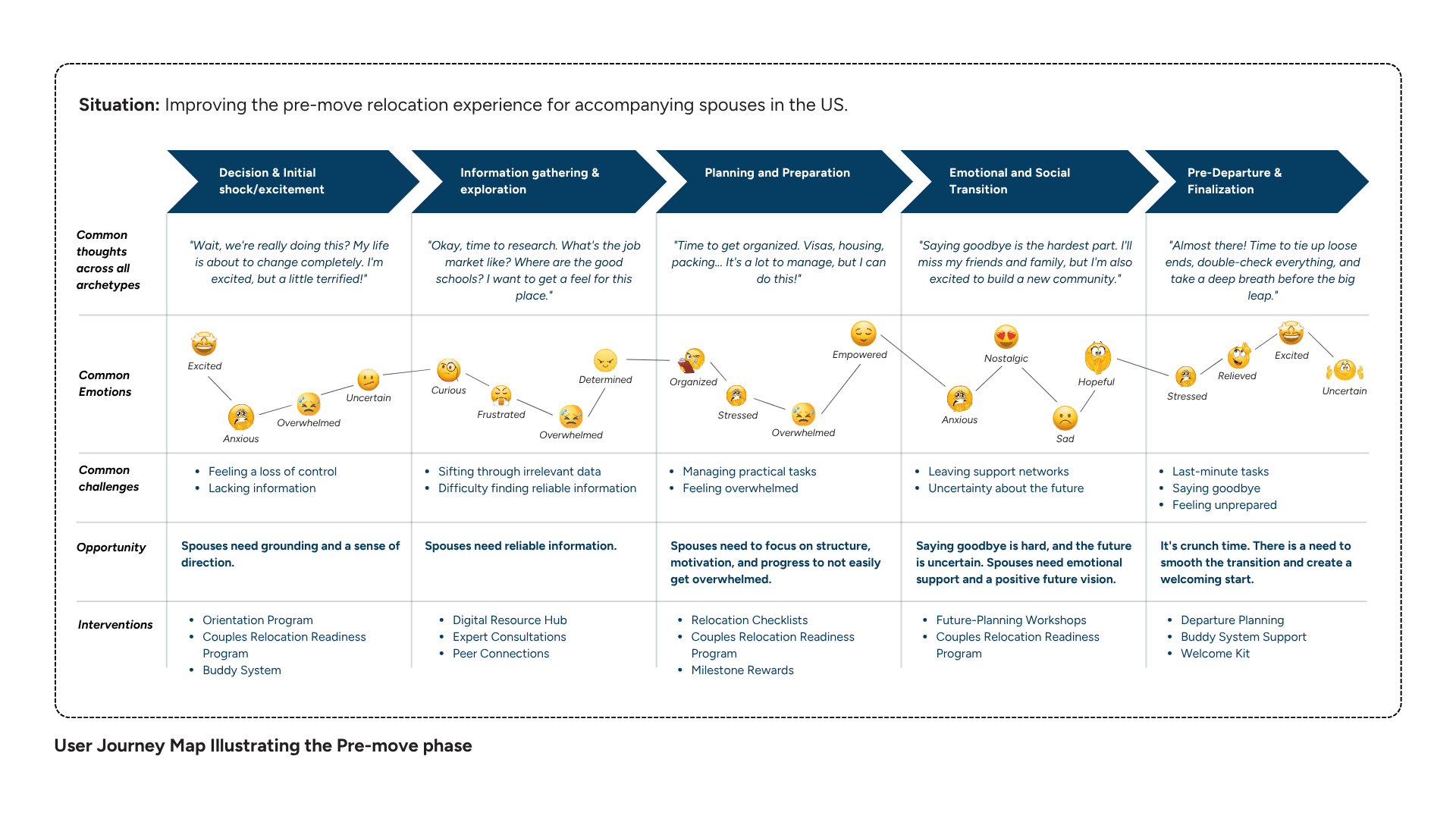 Reframed Spousal Relocation as a Long-Term Service Journey earning an 86% adoption intent from the primary user group during concept testing.