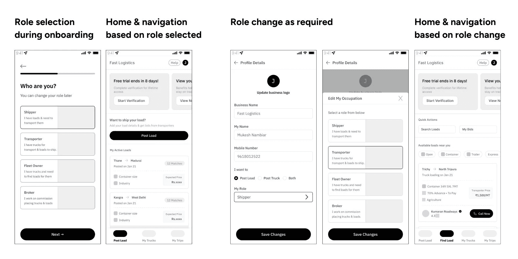 Shippers, brokers, and fleet owners share a platform but have fundamentally different task motivations. A one-size flow created invisible friction for all three.
