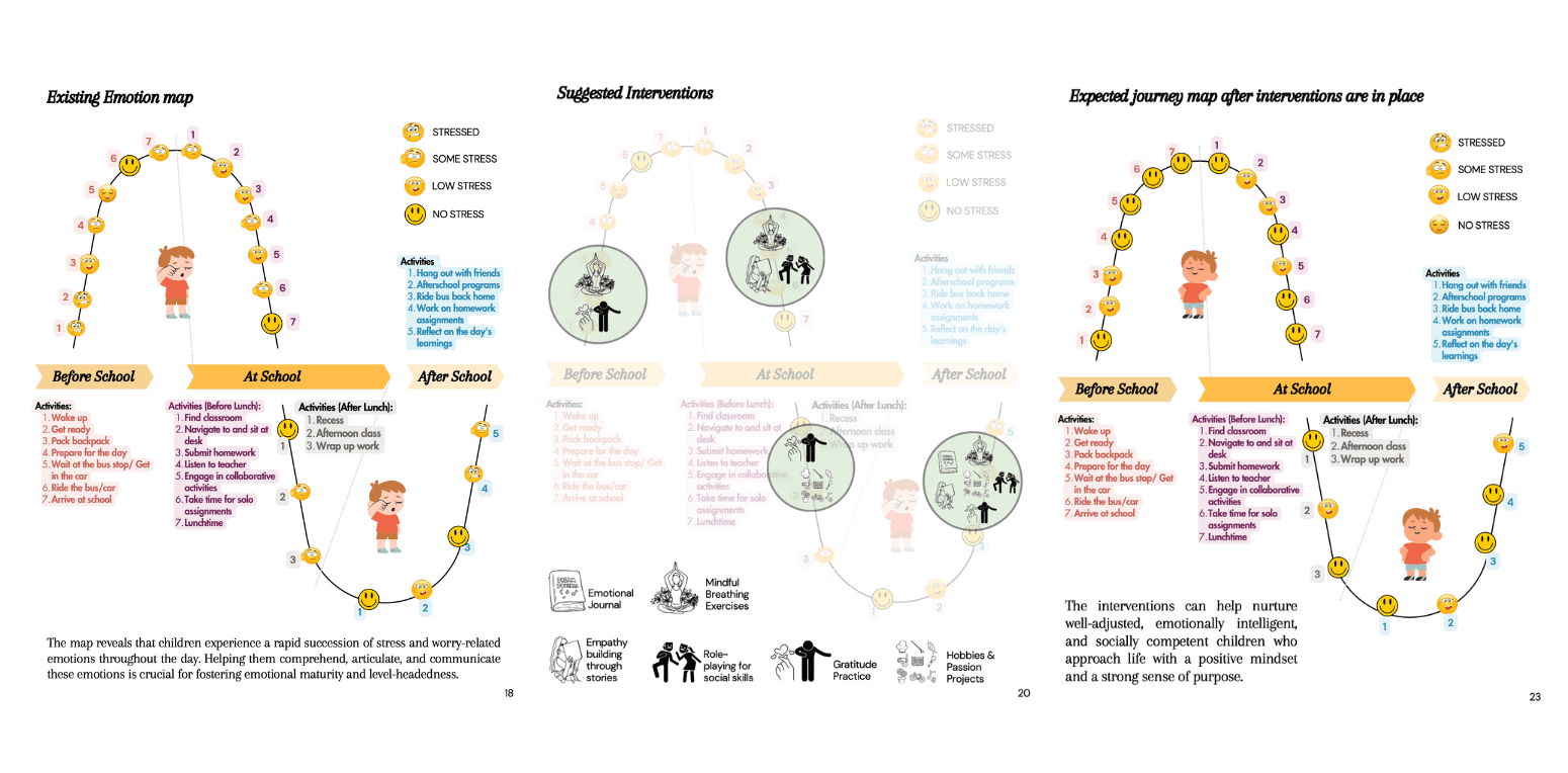 Before designing an intervention, the emotional ecosystem — home, school, peer environments — needed to be mapped to understand where feelings formed and where they broke down.