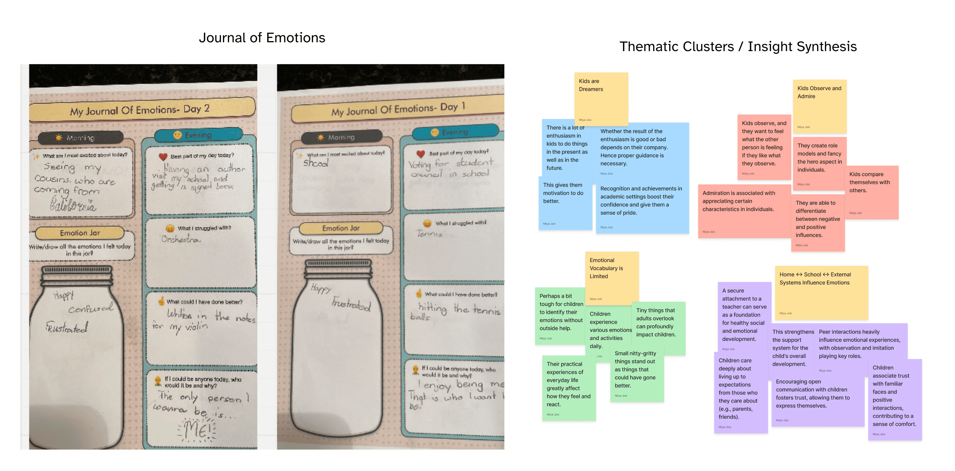 Children could name emotions, but their vocabulary was extremely limited—making it difficult for them to express internal states or resolve conflicts. Their emotional experiences fluctuated significantly throughout the day, shaped by interactions within multiple systems (home, school, external environments). The strongest need that emerged: