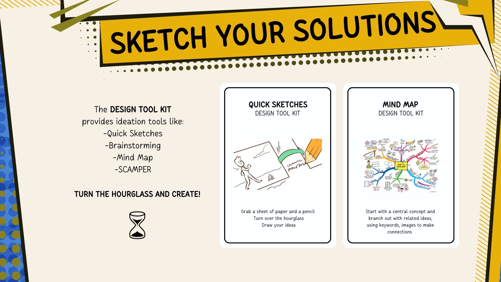 Ideation toolkit — quick sketches and mind mapping as structured thinking protocols within timed game rounds